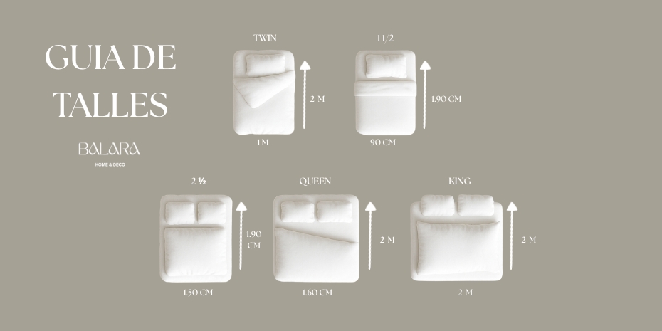 Debajo encontrarás la tabla de talles con las medidas sugeridas para cada cama, para que compres con total tranquilidad.